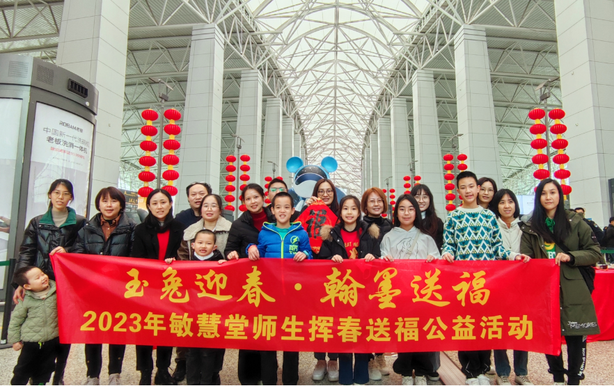 【玉兔迎春 · 翰墨送?!?023年敏慧堂師生走進廣州白云機場揮春送福公益活動。